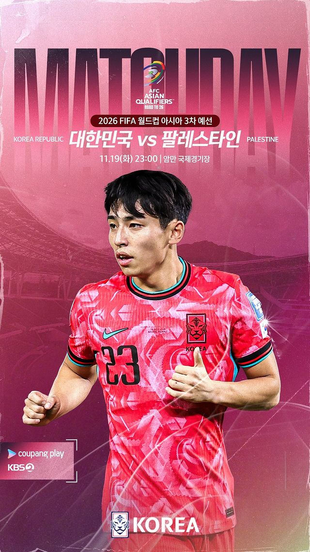 2026년 북중미 월드컵 아시아 3차 예선 6차전이 2024년 11월 19일에 팔레스타인과 대한민국 축구 국가대표 경기가 요르단 암만 국제 경기장에서 열립니다.